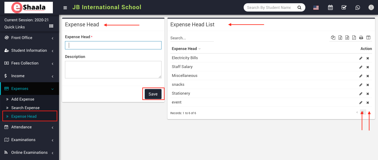 To edit expense head, click on the Edit icon present in the expense head list and to delete the expense head click on the Delete icon present in the expense head list.