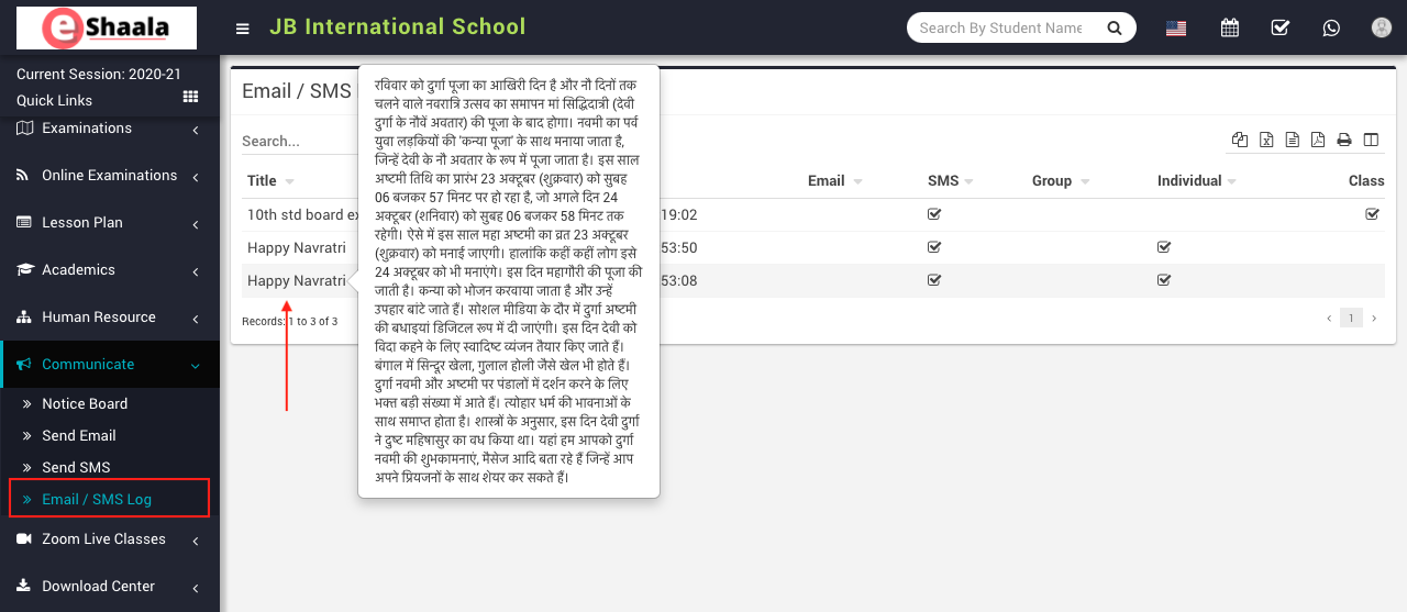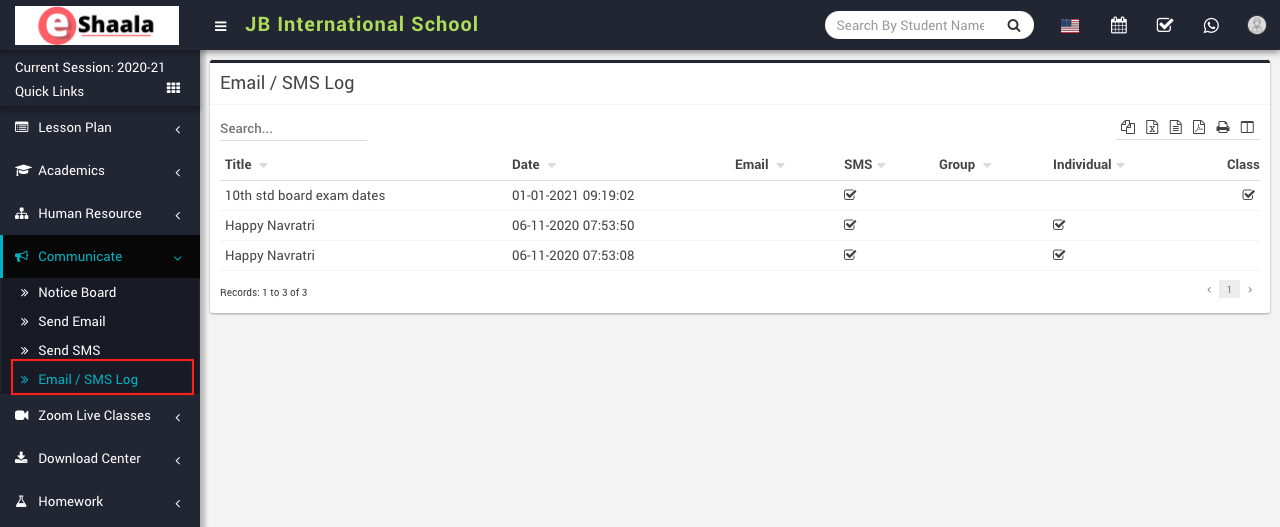 To view Email/SMS log, go to Communicate > Email / SMS Log, here you can see all the sent Email/SMS.
